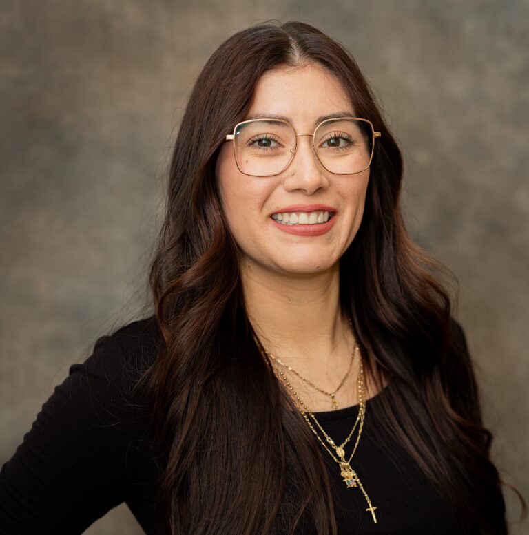 Maria Valdez y Gloria Cruz platican sobre el Departamento de Asesores Financieros en Crawford County Memorial Hospital. Gloria Cruz es una asesora (o consejera) financiera