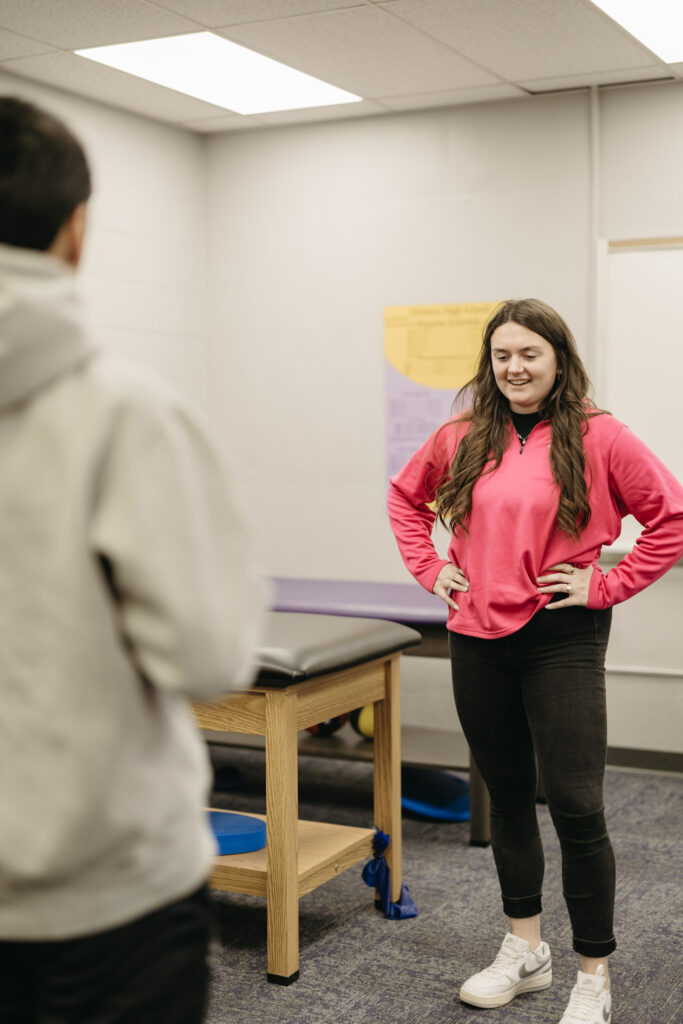 Her role involves a combination of injury evaluation, rehabilitation support, and event coverage for student athletes. During the school day, she prepares rehabilitation plans and coordinates care for athletes who may be recovering from injuries. As the day progresses, students often stop by for treatment, exercises, or injury evaluations before practices begin.